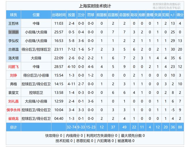 上海88-52四川 球員評價:2人滿分,5人及格,5人低迷