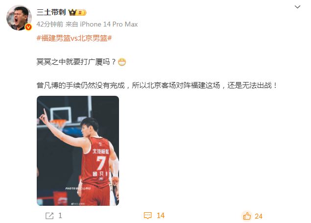 如今根據媒體人三土帶刺報道:“冥冥之中就要打廣廈嗎?曾凡博的手續(xù)仍然沒有完成,所以北京客場對陣福建這場,還是無法出戰(zhàn)!