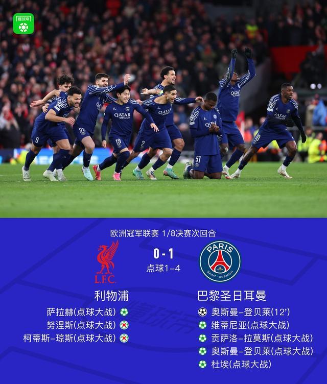 上賽季的利物浦在新帥斯洛特的執(zhí)教下在聯(lián)賽中高歌猛進(jìn),歐冠同樣也戰(zhàn)績(jī)出色,聯(lián)賽階段他們7勝1負(fù)高居榜首,巴黎則是落位附加賽,在戰(zhàn)勝布雷斯特后才晉級(jí)淘汰賽,相信大部分球迷都覺(jué)得利物浦會(huì)輕松過(guò)關(guān),不過(guò)真正的交手結(jié)果讓人出乎意料——首回合巴黎狂攻無(wú)果,但次回合他們扳平總比分,隨后點(diǎn)球大戰(zhàn)贏下利物浦,成功晉級(jí),也由此開(kāi)啟了自己一個(gè)賽季的神奇之旅。